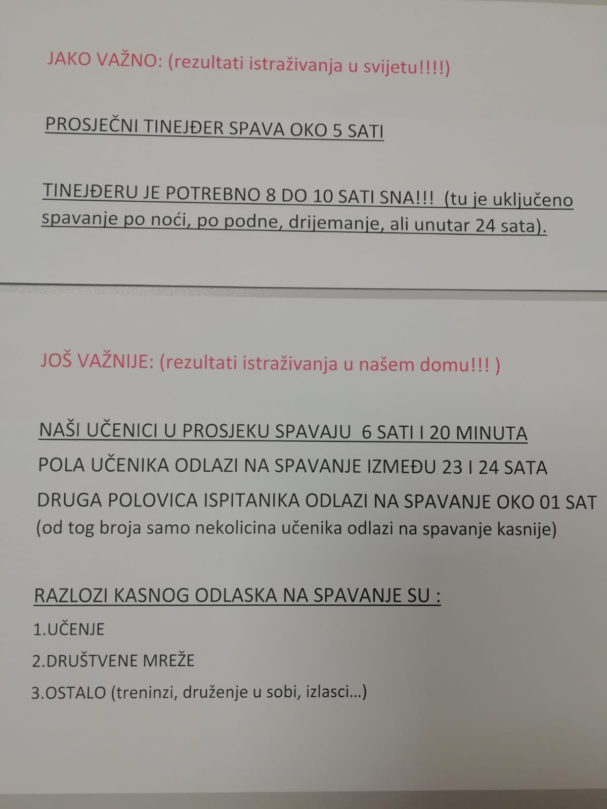 - NAŠI UČENICI SPAVAJU U PROSJEKU 6 sati i 20 minuta!!!