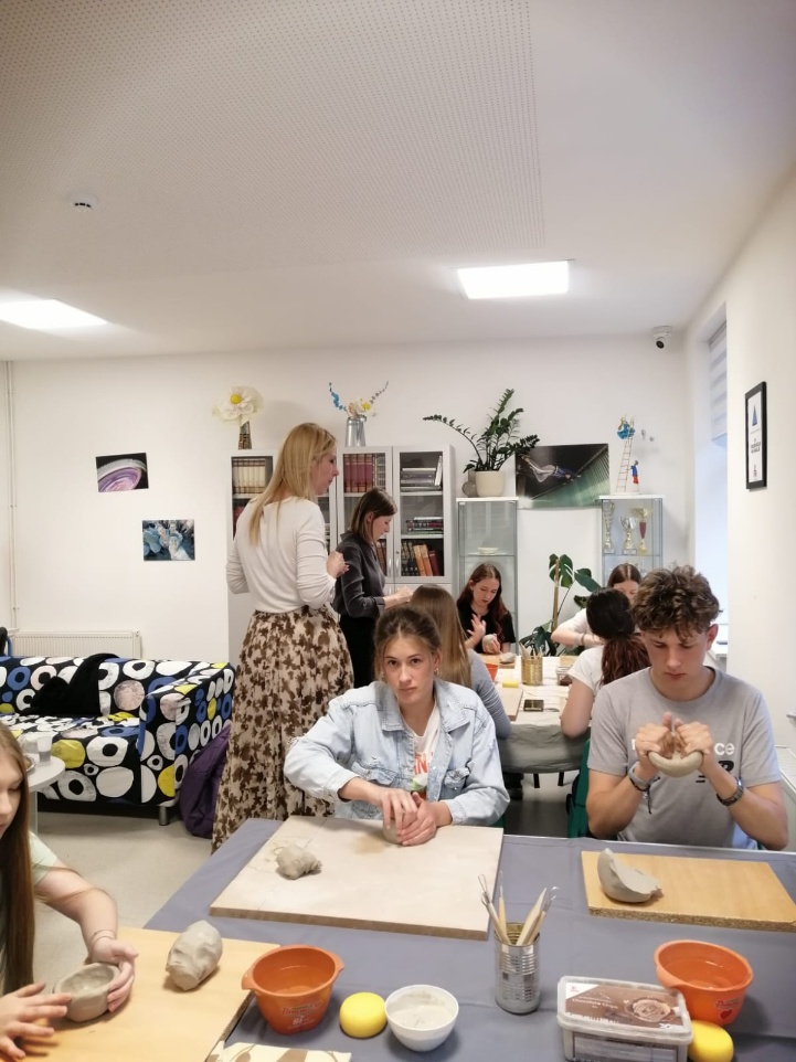 Na Juice&Art radionici naši učenici su, zajedno s vršnjacima iz drugih domova, imali priliku okušati se u izradi keramičkih predmeta. Radionica je bila jednostavna i praktična – svatko je radio svojim tempom, a rezultat su zanimljivi radovi i nova poznanstva.